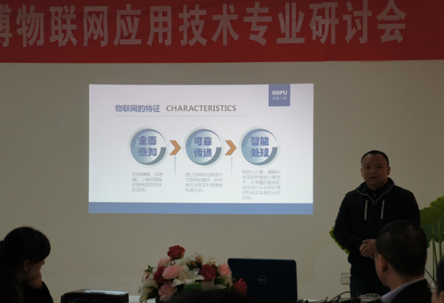 參加本次研討會的學校嘉賓有:荊州職業技術學院副院長方風波、教務處處長詹永東、校企合作與就業處處長湯欽林、國際信息技術學院常務副院長蔡波以及信息技術系專業教師;湖北國土資源職業學院副院長周從軍、信息技術系主任管勝波、信息技術系書記馮越;黃岡職業技術學院電子信息工程學院院長羅幼平、物聯網教研室主任李敏;湖北三峽職業技術學院電子信息工程學院院長李建利、電子信息工程學院副院長秦工、電子信息工程學院專業教師鄒志龍;武漢厚溥教育科技有限公司副總經理黎祝明、技術總監翁高飛、物聯網專業負責人李杰、專業研究員涂建以及各合作學校的學術經理、物聯網專業老師等。