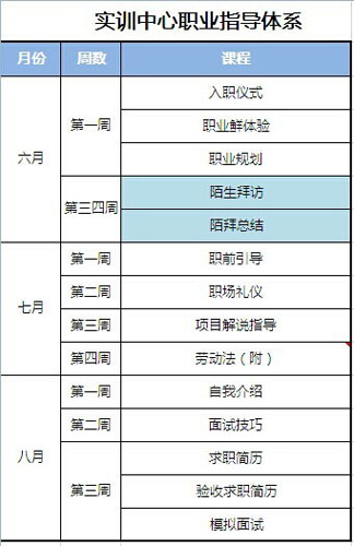 鑒于當前大學生缺乏實際訓練機會,有的學生理論知識學得很好,但由于性格過于內向,一說話就臉紅,不愿或不敢和陌生人說話;有的學生滿腹經綸卻在與人溝通時,不會對人微笑;或者有的學生意志薄弱,在遇到挫折時很容易心灰意冷等。這顯然離企業需要的優秀人才的素質要求相差甚遠。為了提高學生的面對陌生人說話的表達能力,提高學生的社會適應能力,武漢厚溥教育科技有限公司實習實訓中心在以提升大學生綜合素質為目的的職業指導體系中——構建“陌生人拜訪”課程。