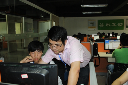 夏小山老師在課堂上輔導(dǎo)學(xué)生做項(xiàng)目