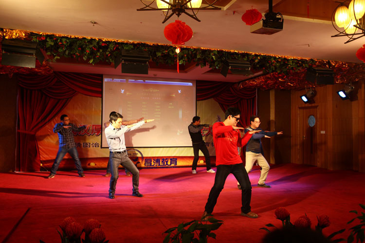 春敲起了戰鼓,年吹響了號角!2013年1月15日-17日,武漢厚溥教育科技有限公司2013年度年會在安徽省合肥市三河古鎮、冶父山、金孔雀度假村盛大舉行,武漢厚溥企業董事長陳相陽、執行董事吳簡珍、總經理胡俊等重要領導及全體同仁歡聚一堂。整個年會包括游玩三河古鎮、冶父山拓展、溫泉、全員聚餐、優秀員工表彰及文藝匯演等環節。整個年會始終洋溢著振奮、進取、熱烈、愉快的氣氛,精彩紛呈,亮點鮮明。