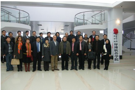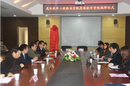 2013年12月2日下午15:00武漢厚溥教育科技有限公司與武漢軟件工程職業(yè)學院(以下簡稱武軟)在武軟實訓中心二樓會議室舉行了校企合作共建院系厚溥軟件學院揭牌儀式。