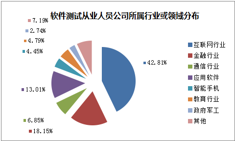 數(shù)據(jù)顯示,被調(diào)查測試人員所屬公司中,互聯(lián)網(wǎng)行業(yè)及金融行業(yè)分別占42.81%和18.15%,綜合占比超過六成,這也印證了經(jīng)濟(jì)結(jié)構(gòu)調(diào)整的成果,目前互聯(lián)網(wǎng)行業(yè)和金融行業(yè)受到了投資者和個人的青睞,企業(yè)需求急劇上升,軟件測試人才缺口巨大。