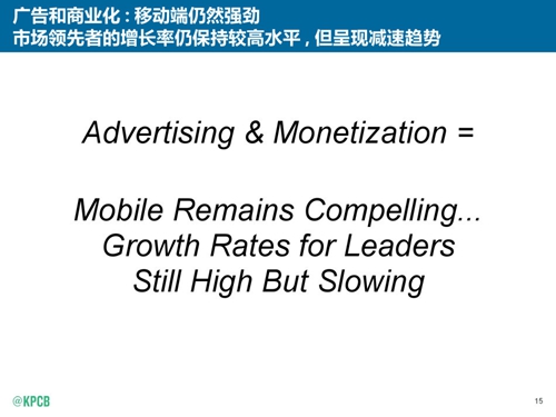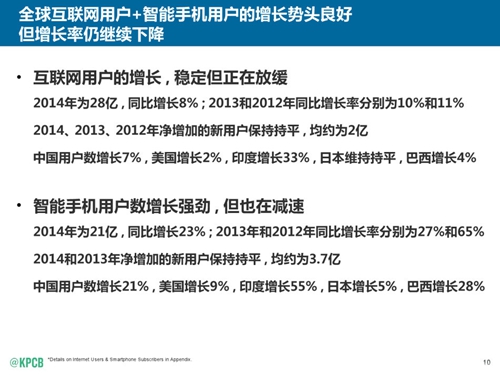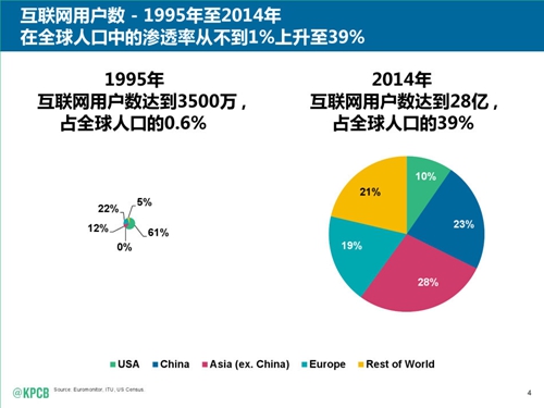 被譽(yù)為“互聯(lián)網(wǎng)女皇”的KPCB合伙人瑪麗·米克(Mary Meeker)今日發(fā)布了年度互聯(lián)網(wǎng)報(bào)告。這是米克連續(xù)第20年發(fā)布互聯(lián)網(wǎng)報(bào)告,報(bào)告涵蓋了廣泛的趨勢(shì)。以上為新浪科技制作的中文版報(bào)告。